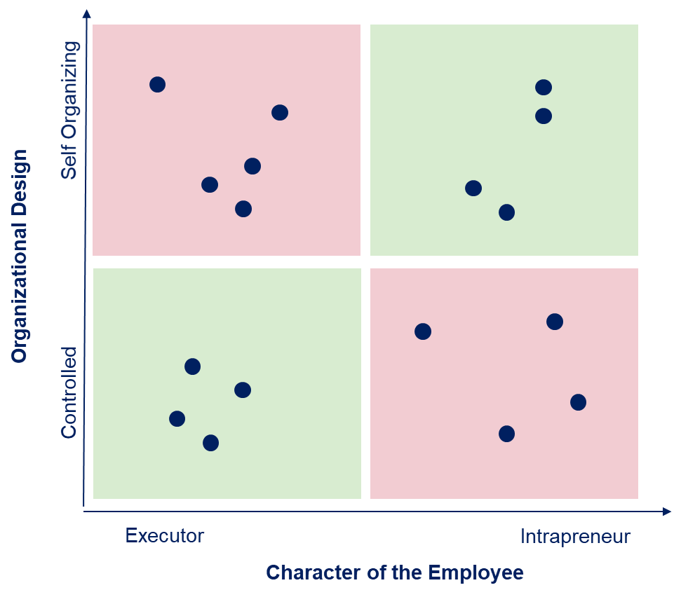 Dieses Prinzip bezieht sich zum einen auf das Ecosystem "Unternehmen" und zum anderen auf die Eigenschaften der Mitarbeiter. Agile Arbeitsweisen stellen einen hohen Anspruch an die Selbstständigkeit und Eigenverantwortung der Teammitglieder. Agile Teams sollten daher möglichst mit intrinsisch motivierten Mitarbeitern besetzt werden. Im Gegenzug sollte das Unternehmen diesen Mitarbeitern Vertrauen entgegenbringen und ihnen die Unterstützung geben, die sie zum Erreichen des Projektzieles benötigen. 👍 Als Vorgesetzte erkennt eure motivierten Mitarbeiter und gebt ihnen die Chance, in agilen Projekten zu arbeiten. Vertraut ihnen und gebt ihnen eure Unterstützung.