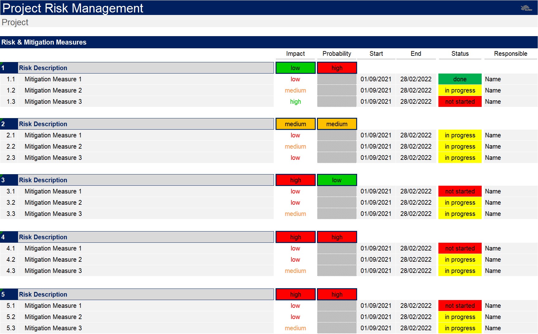 wahrscheinlichkeit und Impact sowie erster Mitigation Measures